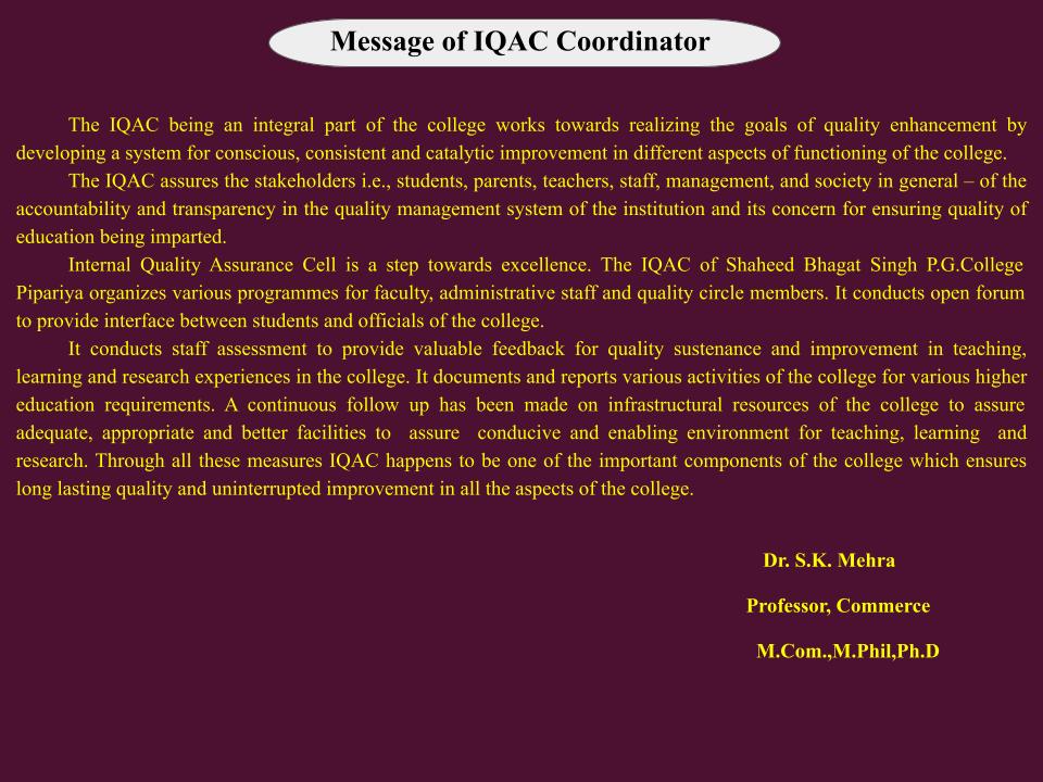 P.G. College Pipariya in year 2021.The college was previously affialted by Dr. Hari Singh Gour University Sagar (M.P.)